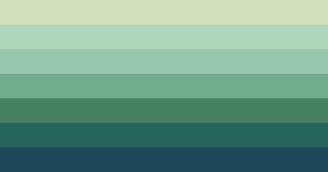 #d2e0bc #afd6bb #96c8af #71ae8f #458263 #256459 #1c4758